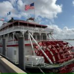 After dinner we hurried back toward the ferry landing. We stepped aboard just as it was preparing to leave—perfect timing. The boat pushed off across the Mississippi and delivered us back to Algiers. We walked along the levee for a few minutes, admired the nighttime view of New Orleans across the river, and then called an Uber back to our campsite. It was an outstanding day.