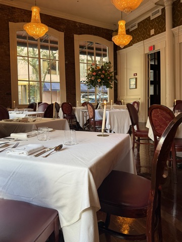 Inside, we ordered the four-course menu and selected from three choices for each course. Neither French nor Southern cuisine is normally at the top of our list, so we approached the meal with a spirit of adventure. The service was impeccable. Some courses delighted us more than others, but the beef, duck, shrimp, and strawberry shortcake were genuinely exceptional. Even when a dish wasn’t exactly our style, it was fascinating to see the creativity behind it. Dining there felt a little like attending a culinary concert.