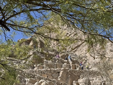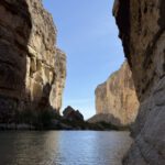 Next stop: Santa Elena Canyon. This is one of those hikes that delivers immediately and then just keeps getting better. The trail climbs briefly and then drops you into the canyon where the Rio Grande quietly does its long, patient work. Towering limestone walls rise straight up on both sides—Mexico on one side, the U.S. on the other—like two neighbors who built a fence and then forgot why.