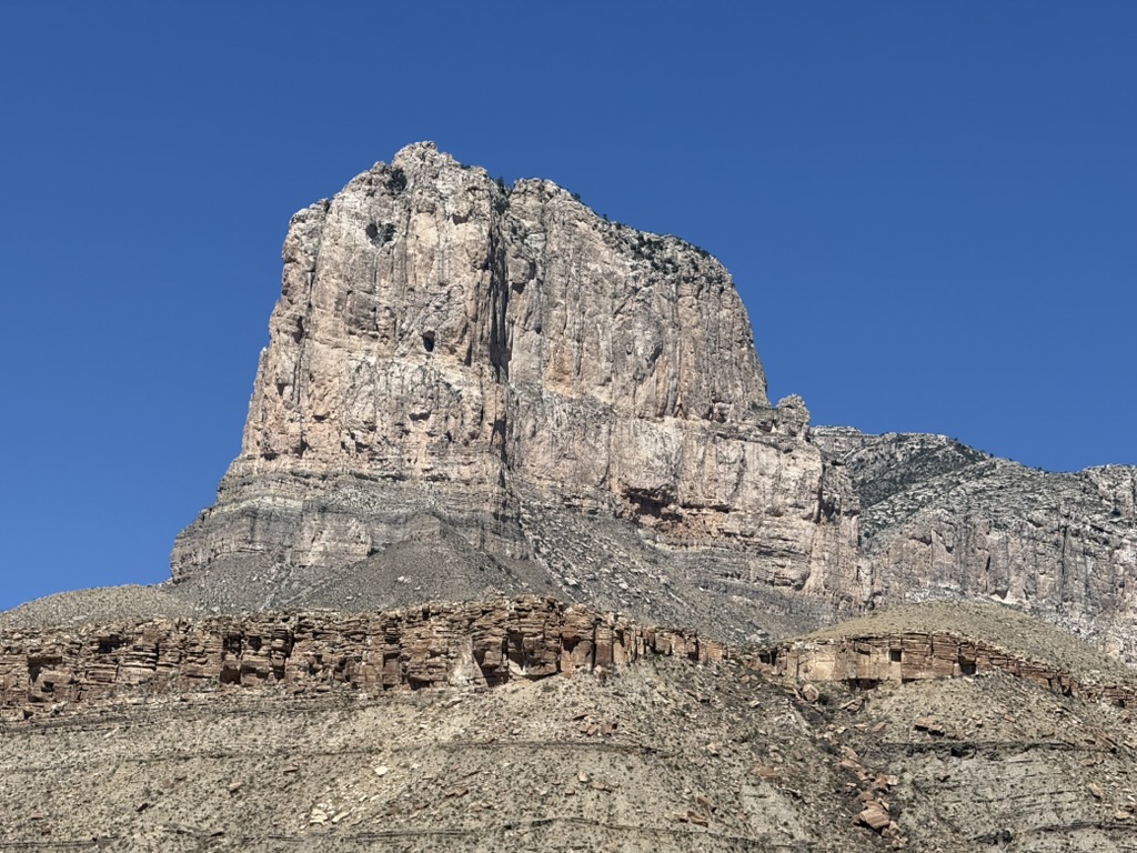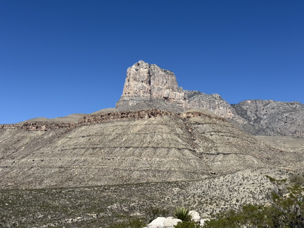 After finishing the loop, we stopped briefly at the Pine Springs Visitor Center to get oriented, then drove to Guadalupe Peak Overlook for lunch. From there you get an excellent view of Guadalupe Peak itself, the highest point in Texas, rising sharply out of the desert floor. It’s one of those views that makes you briefly reconsider your life choices and wonder if you should be hiking to the top—right up until you remember it’s an 8–9 hour round trip, it’s 90 degrees in the shade, and you don’t care about summiting.