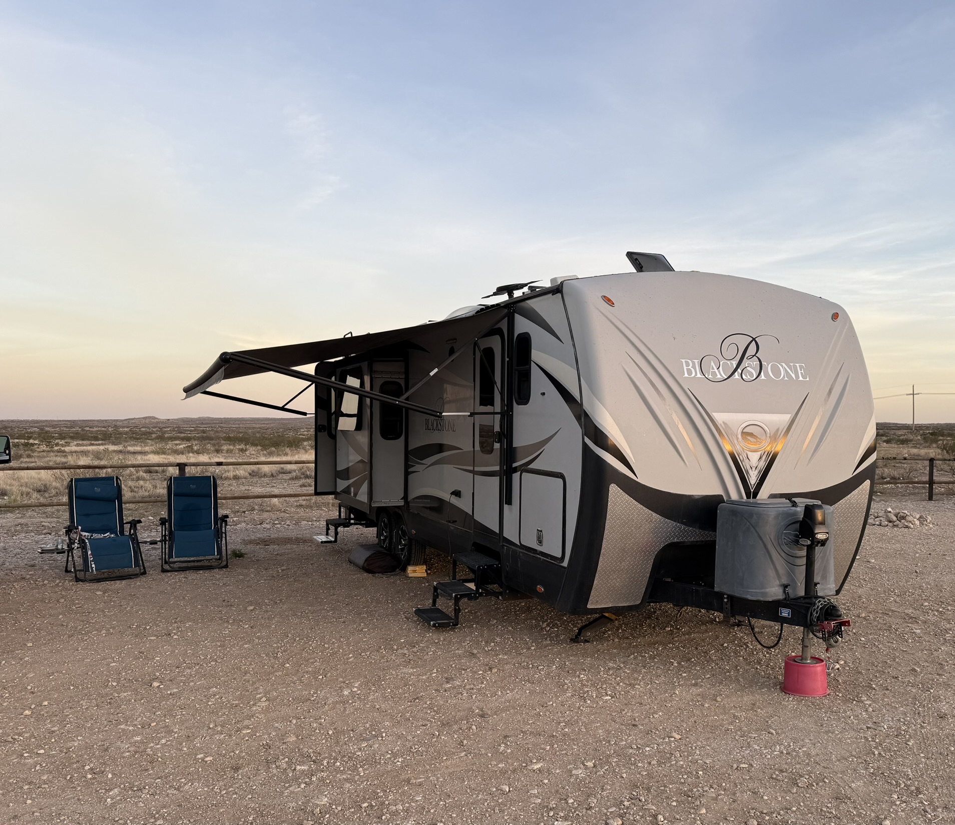 On March 18, 2026, we broke camp at Maverick Ranch RV Park, leaving the dramatic desert of Big Bend National Park behind us and pointing the truck northwest toward Guadalupe Mountains National Park. The drive clocks in around five hours depending on stops, and while a few stretches of West Texas highway reminded us that suspension systems are not just decorative, the journey was otherwise smooth and uneventful—wide open country, long horizons, and the occasional oddity along the way.