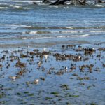 We walked along the seashore for quite a while collecting shells, watching the tiny shorebirds do their frantic little sprints, and soaking in the sun. Truly, we haven’t seen a clear day in weeks, and it was a treat to finally enjoy bright skies, white sand, and the ocean all in the same moment. It was near low tide, so there was an abundance of wet firm sand to walk on. Along the way, we saw and crossed over small streams trickling down the beach before they dumped their fresh water into the ocean.