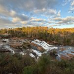 Feeling energized, we next sought some real-world nature and headed 20 minutes to High Falls State Park. The trail from the south side of the river was smooth crushed stone, easy walking—practically a nature sidewalk. Crossing the bridge to the north side, the trail became more adventurous, with stairs, rocks, and the ever-present wet, slippery roots that keep hikers humble. The waterfalls were spectacular, the sun was setting, and we pressed on, delighted to eventually loop back and return to the truck just before dark.