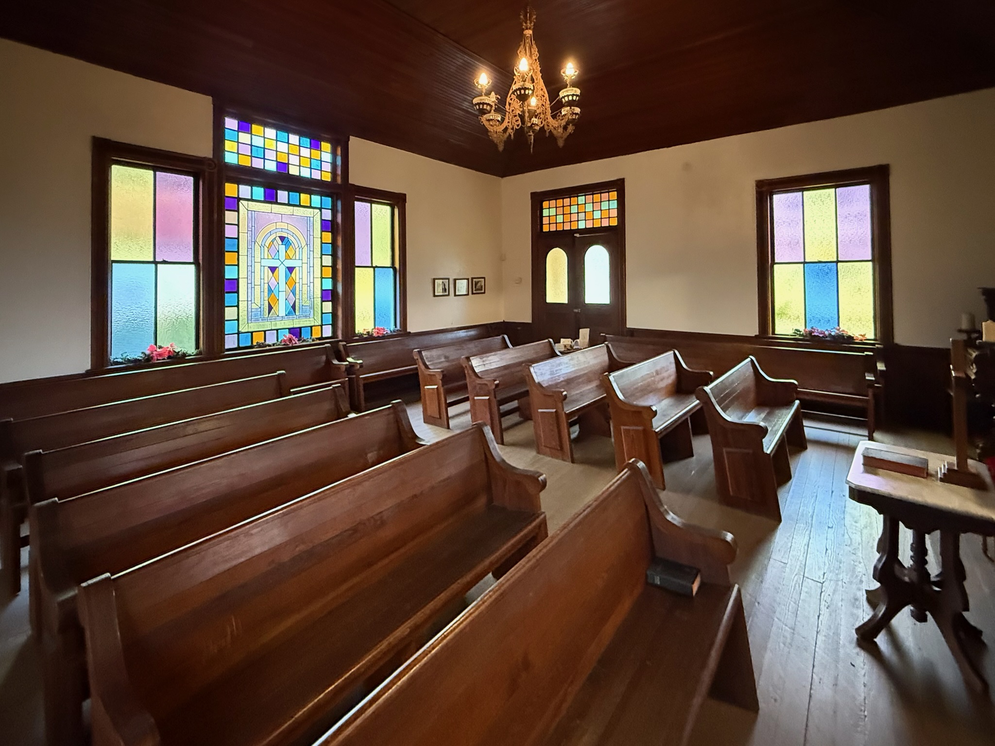 In the afternoon, we wandered the quaint “downtown” area of Indian Springs and toured an old hotel and church. Back in the 1800s, people flocked here to enjoy the mineral-rich spring waters—think 19th-century spa day meets stagecoach traffic jam. The town even had a train running up and down Main Street. We were the only visitors that day, which made our hosts almost giddy to talk about the history and the local genealogy. I introduced them to FamilySearch, which they seemed to find quite fascinating. The church itself was small but charming, with beautiful stained-glass windows that glowed in the afternoon sun.