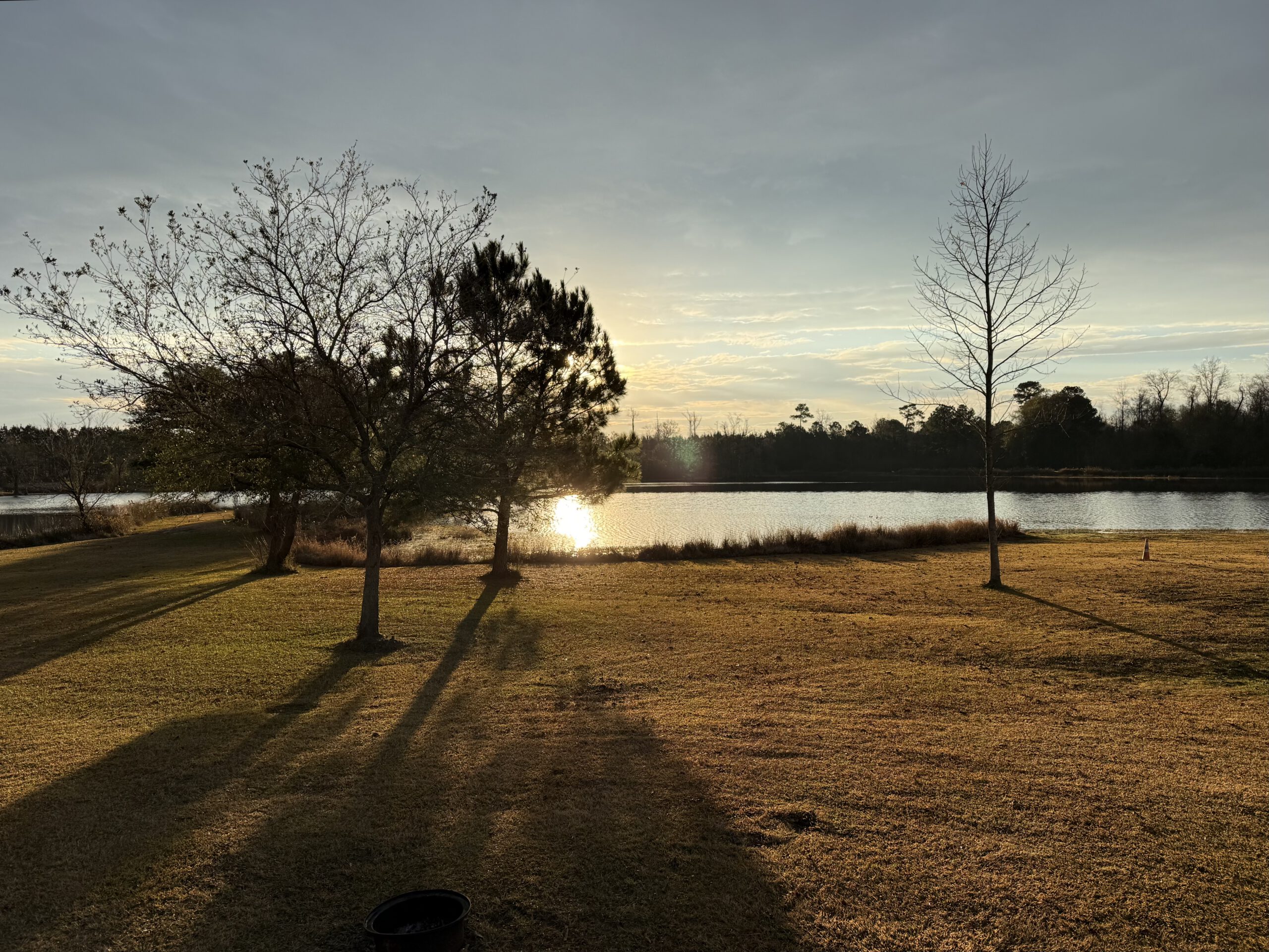 On Thursday, December 11, 2025, we traveled from Hunting Island, South Carolina, to Jacksonville, North Carolina. We had arranged to stay five nights at the JCO Campground. When we arrived, the view from our trailer door at site three was so splendid that we briefly considered whether zoning laws might allow us to build a house right there.