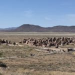 City of Rocks is exactly what it sounds like—massive volcanic rock formations rising out of the desert floor like a natural maze. We spent time wandering through the formations, climbing here and there, and keeping an eye out for petroglyphs. Linda managed to find a couple of particularly interesting ones, including depictions of the familiar hunchbacked flute player—often associated with Kokopelli—hidden in less obvious places. One was etched on the back side of a rock within a small cavity and covered by a hand-sized stone. There’s something oddly satisfying about discovering something like that and then carefully putting it back the way you found it, like you’re part of a quiet, unspoken agreement with everyone who comes after.