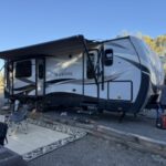 We claimed Site 9, an outside pull-through with a legitimately nice view through the trees. On paper, it looked like an easy win. In practice, it turned into a minor geometry problem. The site was just narrow and short enough to make positioning the trailer more complicated than many of the back-in sites we’d handled recently. After a bit of maneuvering (and a little humility), we finally got everything lined up just right and settled in.