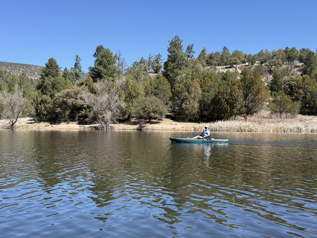 The next day, March 21, we loaded up the kayaks and headed to Lake Roberts, a small but scenic mountain lake about 5 minutes away. We launched easily and spent several hours paddling the shoreline. The lake was calm, the air was cool, and the setting—surrounded by ponderosa pines—felt like a completely different world from where we’d been just days earlier.