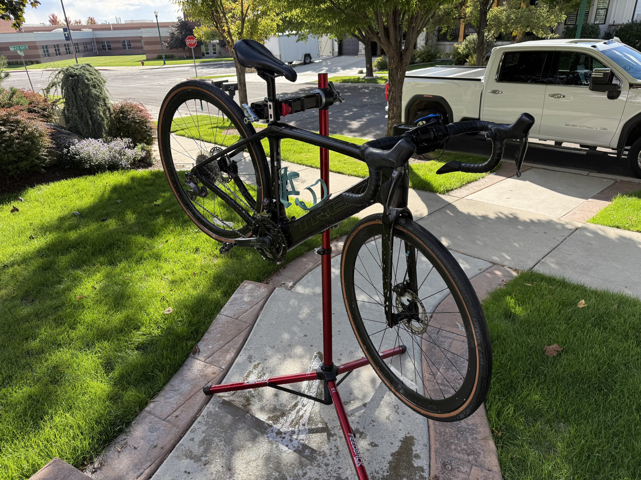 The entire ride from Deadwood to Hill City was gorgeous. We picked the perfect time of the year to ride the Mickelson Trail. In three days, we saw at most two dozen other cyclists on the trail and a handful of pedestrians. The trail conditions were perfect and the fall colors were gorgeous. The trail surface is crushed stone and well packed in most areas. The only loose gravel we encountered was on the first day’s ride, mostly on the descents. However, most of these were obvious and easily avoided. Our bikes originally had 32 mm road tires, but we swapped those out for 38 mm tires to make our bikes more gravel-friendly. They were perfect for this trail.
