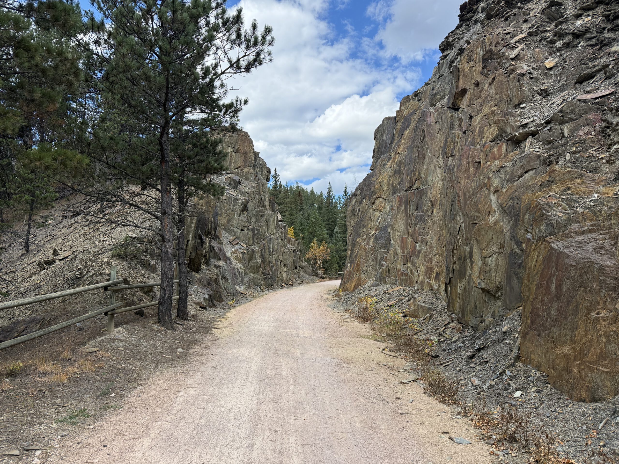 The first 15 miles or so were uphill. Being a rail trail, most of these climbs are gradual. We came across a few short but steeper sections. We never encountered climbs that required walking. You can see from the map that after this initial climb, it was mostly a downhill adventure into Hill City. This section of the trail includes numerous bridges, tunnels, and cut canyons. The bridges are surprisingly smooth, and even the transitions from trail to bridge and back are very smooth. The tunnels are very short and don’t really require lights, but removing your sunglasses is advised.
