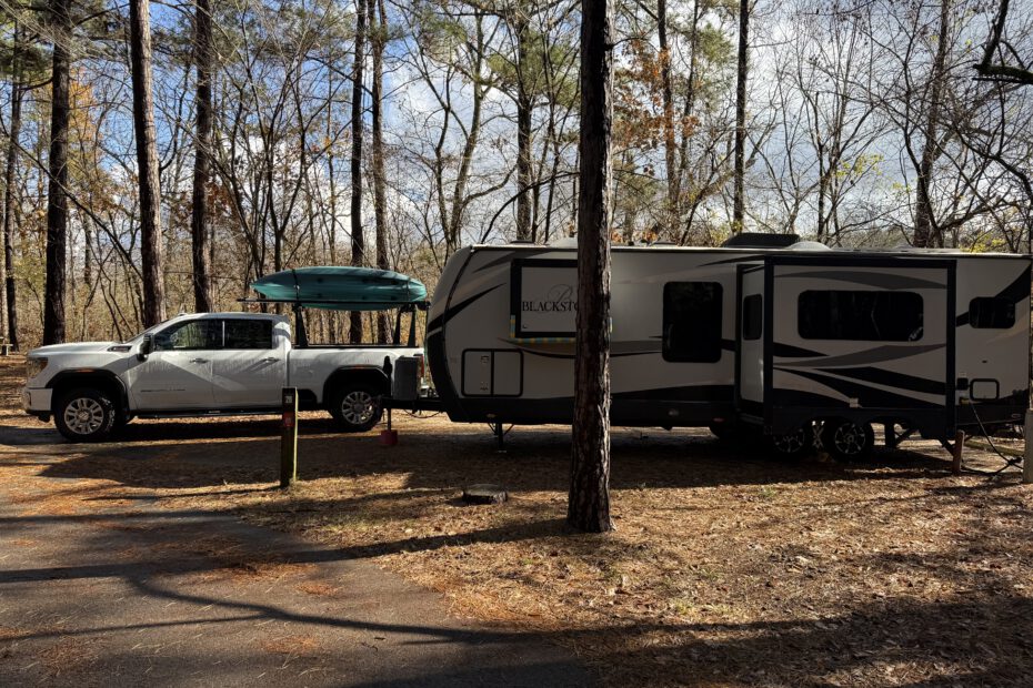 On November 28, 2025, we said our long goodbyes to our family in Arkansas and drove about an hour and a half south to the Aux Arc Campground near Ozark, Arkansas. We occupied site F11.… Aux Arc, Ozark, Arkansas