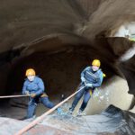 Linda and I, along with ten others, chose to join the second group and descend into Pine Creek Canyon. From the very first step, the adventure was thrilling. We navigated a series of rappels, carefully balanced on boulders, hopped from rock to rock, and waded through chilly pools of water. The canyon demanded attention, patience, and teamwork, but it rewarded us with excitement, laughter, and a sense of accomplishment—we also froze our butts off. The final climb out was short but steep, testing our endurance and leaving us exhilarated… and finally, warm.
