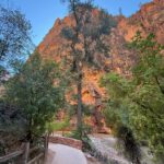 Because private vehicles are not allowed on that section of road, we shared it only with the occasional park shuttle. The ride from the west entrance to the Zion Narrows trailhead was peaceful and memorable. We rode at our own pace, taking in the towering cliffs and quiet beauty of the canyon. Not a single vehicle passed us from behind, and only a few shuttles met us coming the other way. It felt as though the park belonged entirely to us that morning and afternoon.