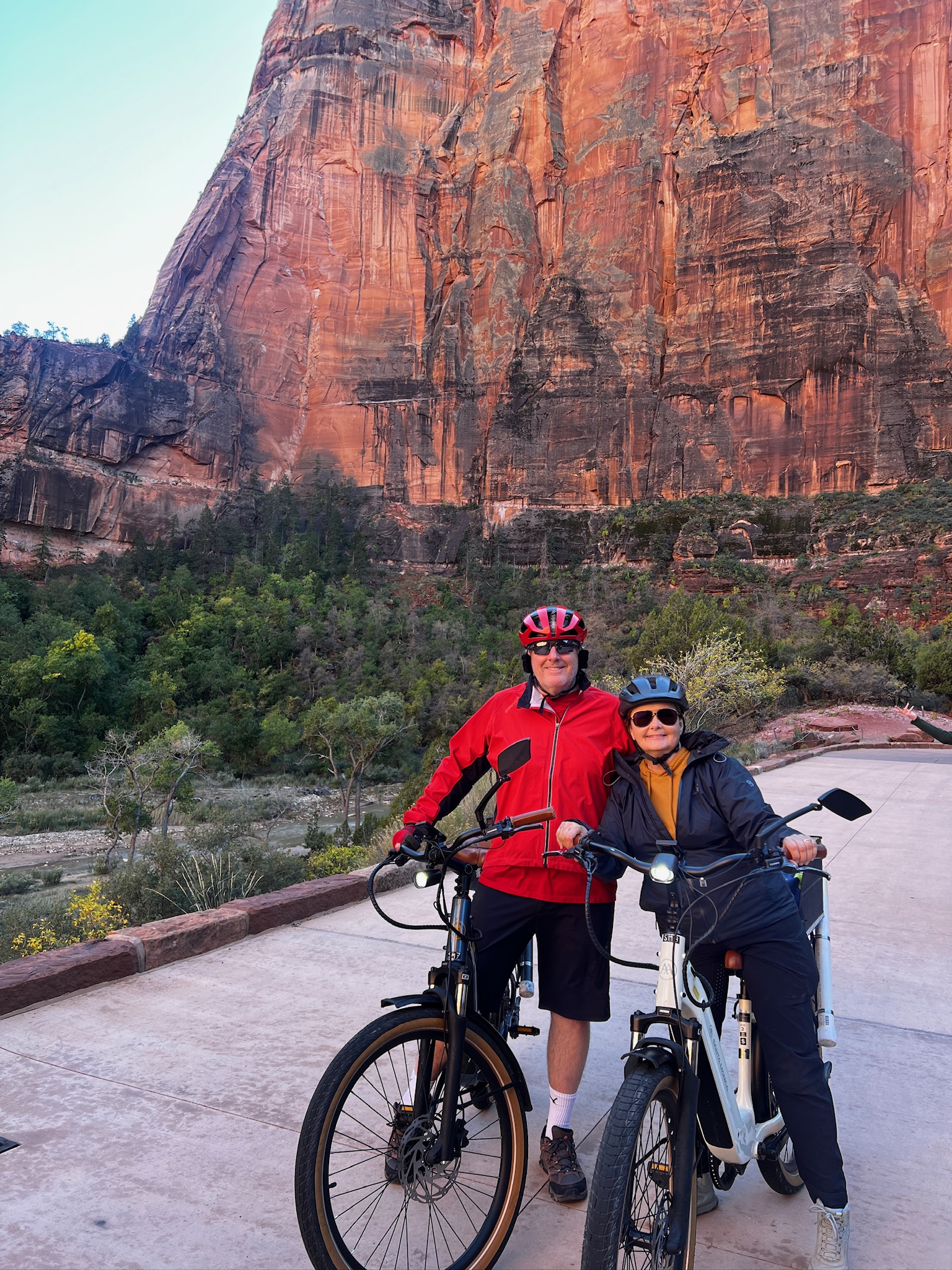 On October 16, our family made the short drive to Springdale, Utah, where we equipped everyone with e-bikes from EBikes Zion for the day. The younger children and infants rode safely with their parents. From Springdale, we rode our bikes into Zion National Park, following a few sidewalks before reaching the main park road.