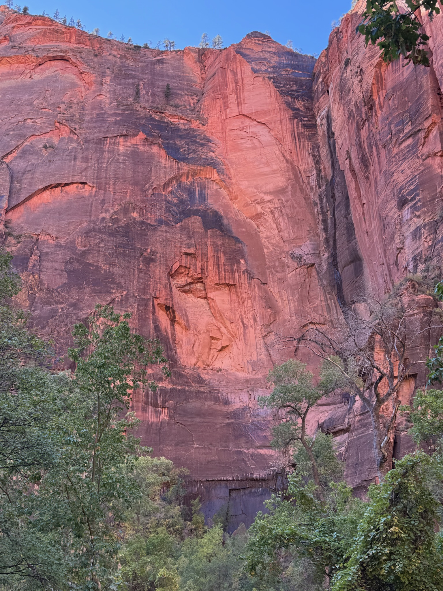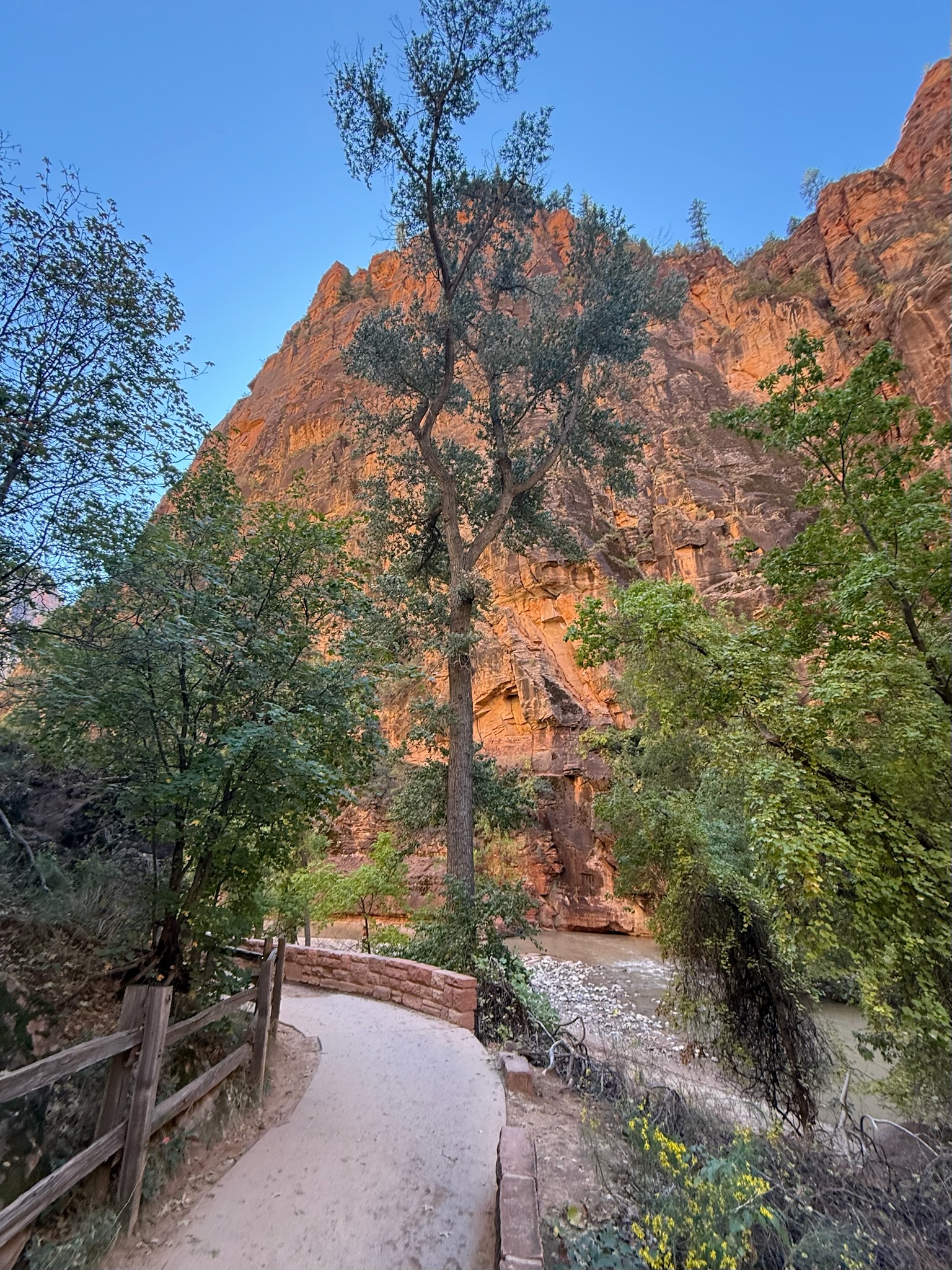 Because private vehicles are not allowed on that section of road, we shared it only with the occasional park shuttle. The ride from the west entrance to the Zion Narrows trailhead was peaceful and memorable. We rode at our own pace, taking in the towering cliffs and quiet beauty of the canyon. Not a single vehicle passed us from behind, and only a few shuttles met us coming the other way. It felt as though the park belonged entirely to us that morning and afternoon.